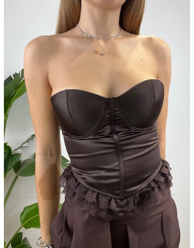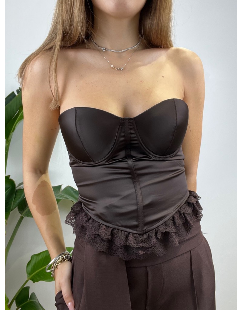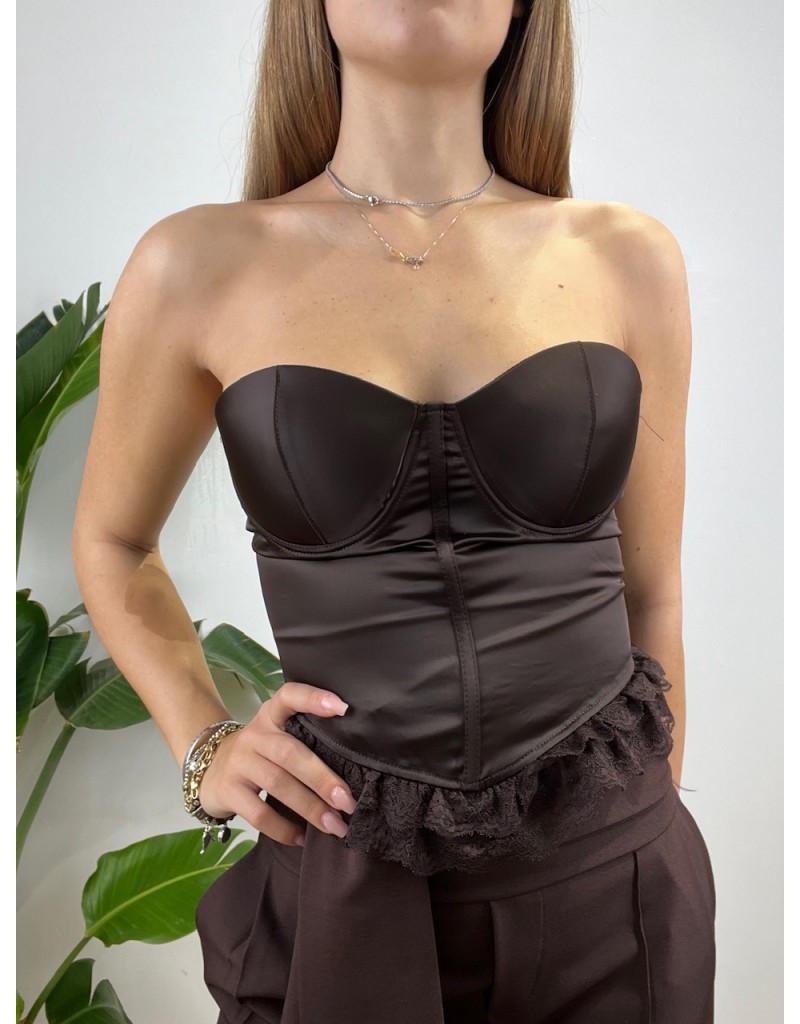 Bustier con bordino in pizzo, tessuto in raso.