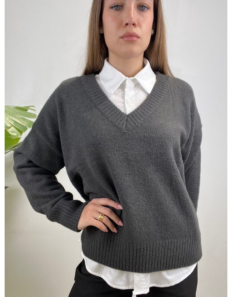 Pullover scollo a V in tessuto caldo e morbido.