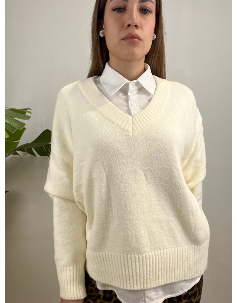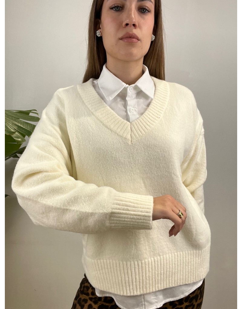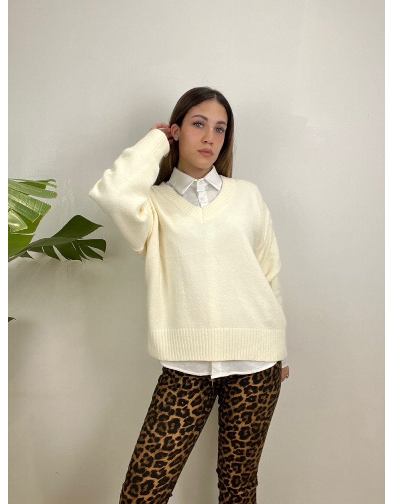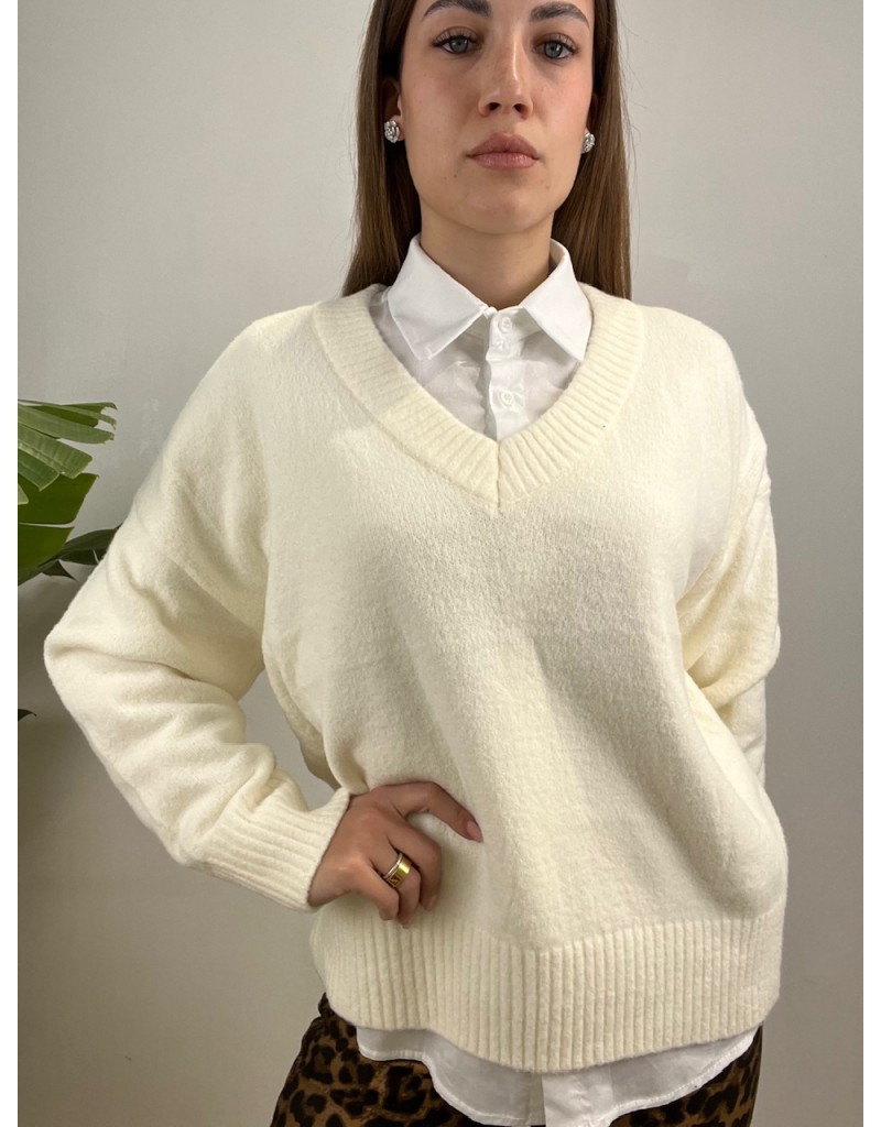 Pullover scollo a V in tessuto caldo e morbido.