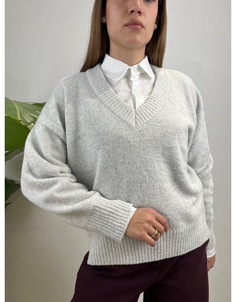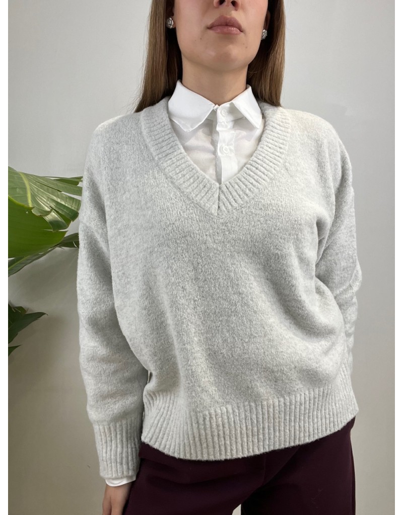 Pullover scollo a V in tessuto caldo e morbido.