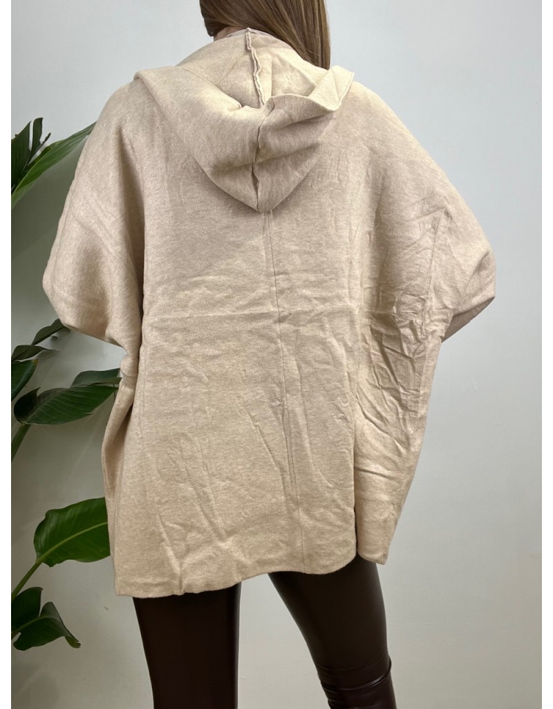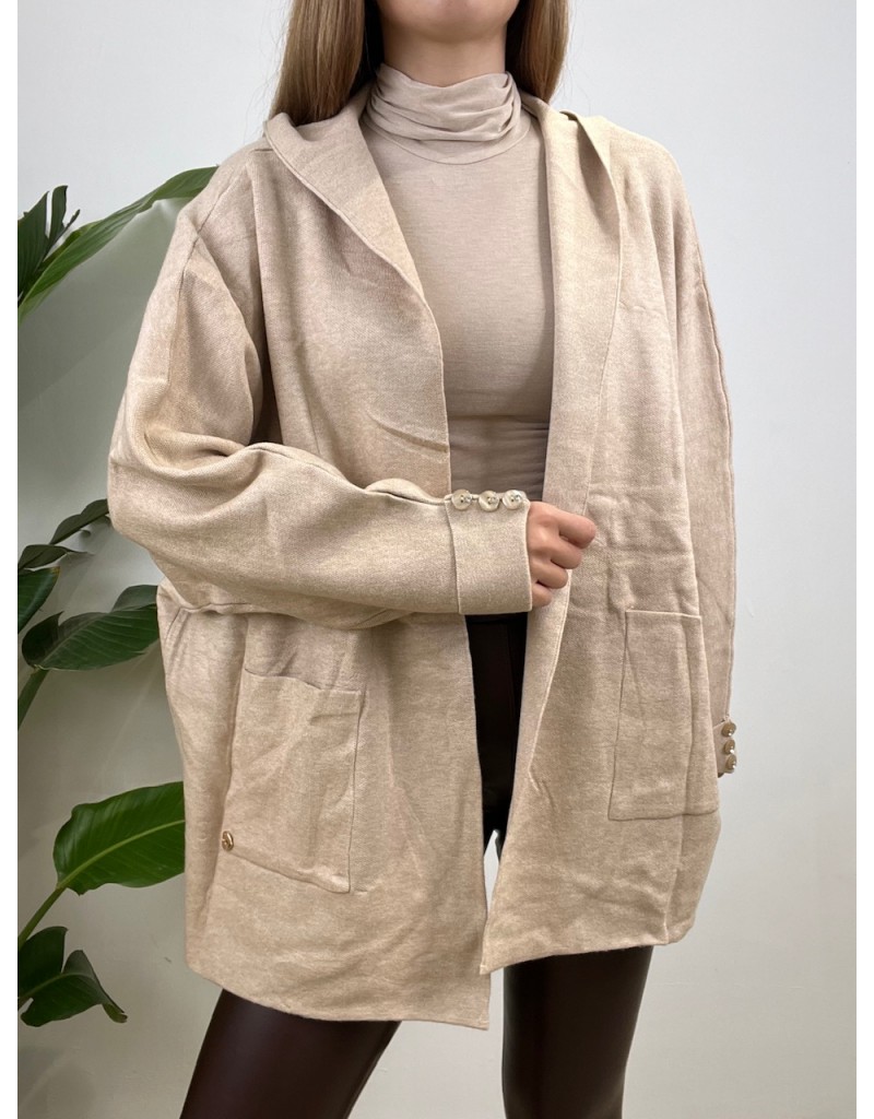 Maxi cardigan con cappuccio e tasche, senza bottoni.