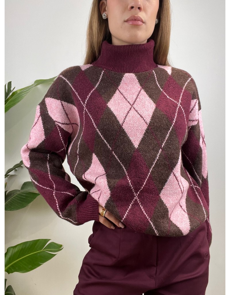 Pullover collo alto con rombi.