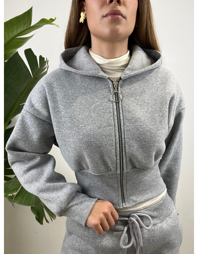 - Felpa Crop con zip e cappuccio;