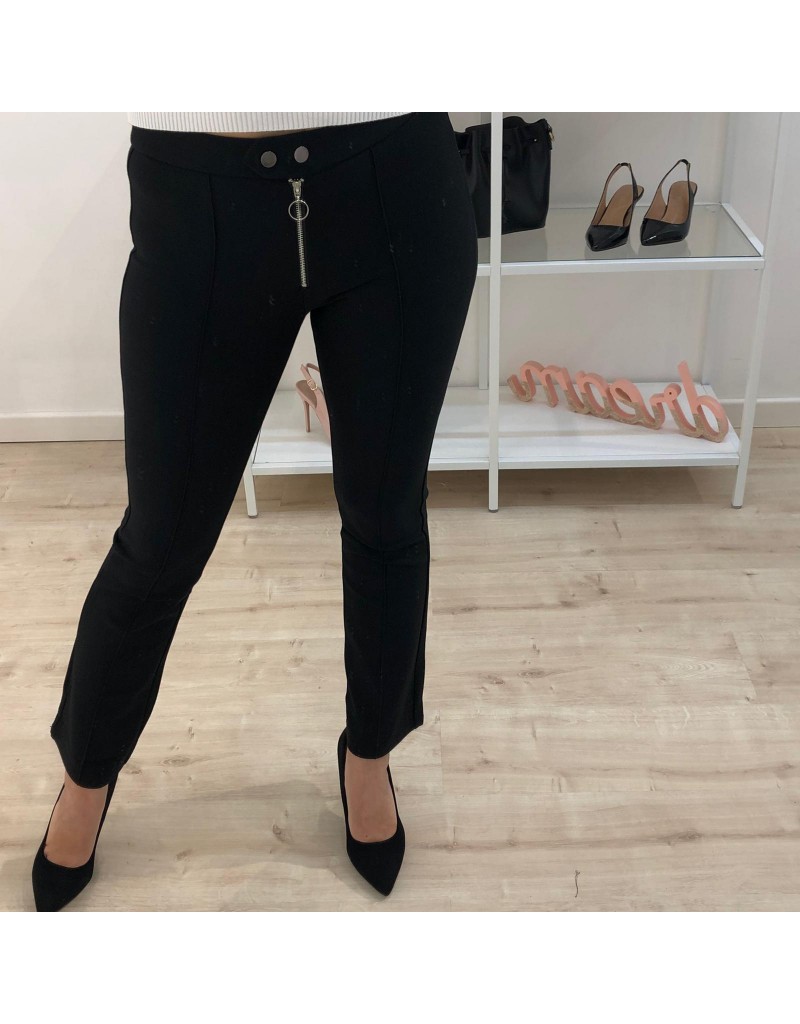 Legging elasticizzato con cerniera e bottone sul davanti, gamba dritta .