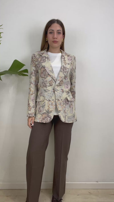 Blazer in tessuto ruvido esterno a fantasia floreale. Foderata internamente.