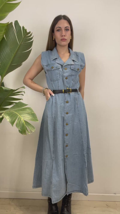 LONG DRESS CAMELIA DENIM CHIARO